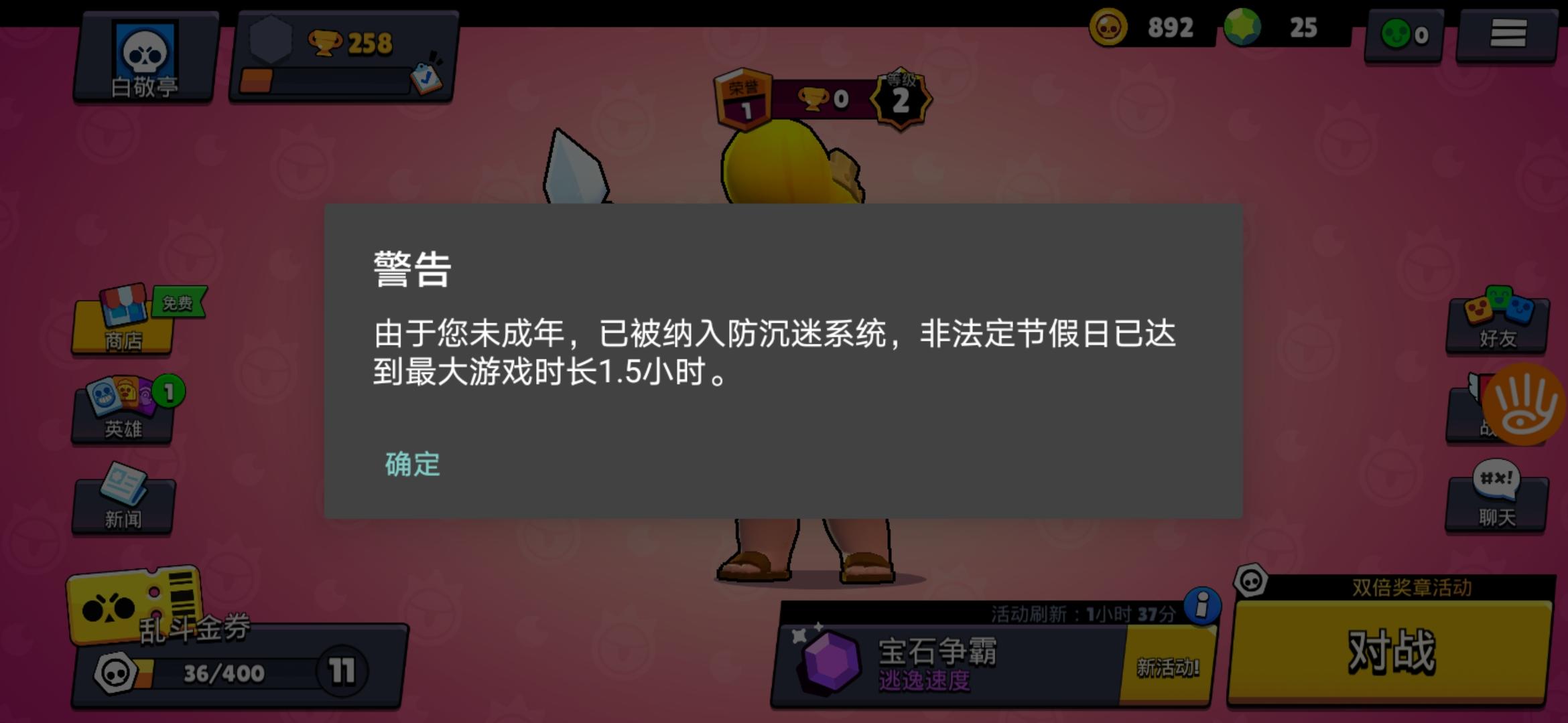 三天了,只要一上线就提示这个,是一个星期只能玩一个半小时?