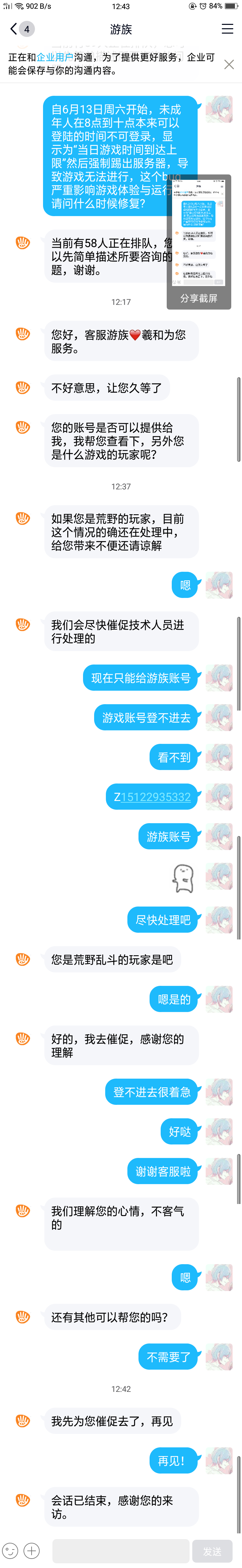 未成年不能登游戏bug问题已经反馈了!