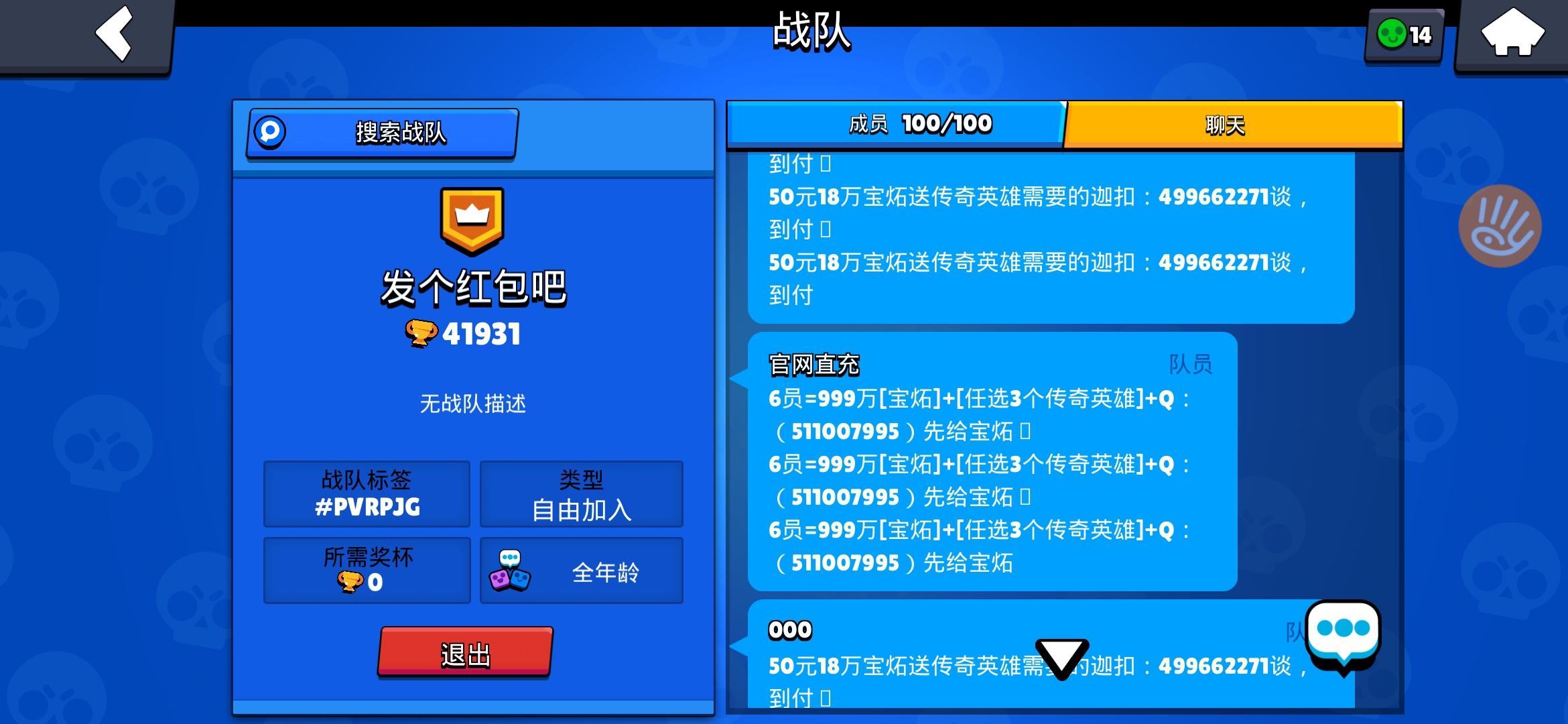如图,这两货在战队里刷个没完,以前皇室顶多刷完就跑,这两货不停的刷也不退,烦死人了,整个战队都没说话的了,举报是个摆设,首领也不管管,战队成了个啥地方了?