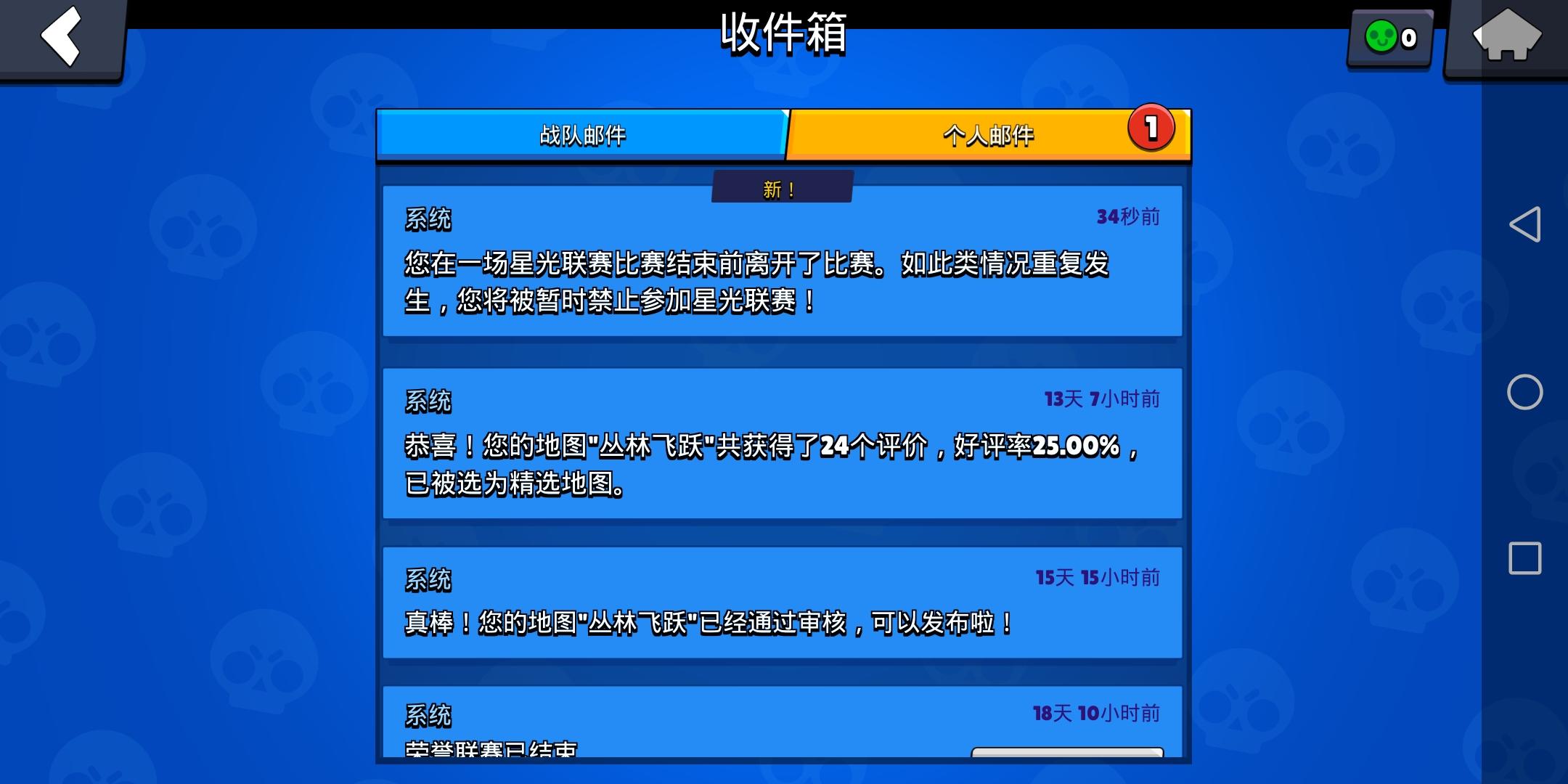 打星光联赛时突然出现这个画面,重进游戏之后就收到了举报的消息😭希望官方大大修复这个bug。(主要被禁赛真的难受)