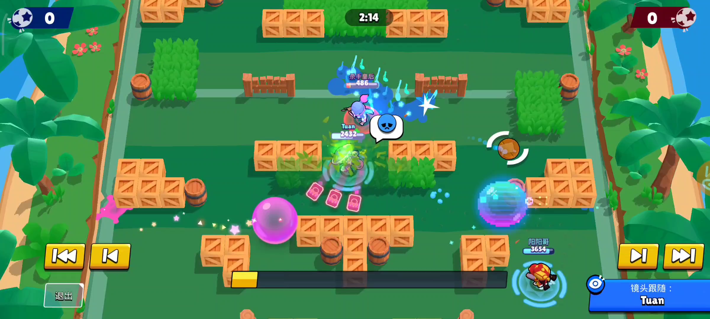 看到今天有赏金猎人,我打开小号,啪就点进去了,很快啊,然后上来就选了迪克。按照传统功夫点到为止,开局我丢在星星上没有打他们,结果对面不懂规矩直接走到地雷上然后死光了。后来我看人半天也不出来,我就走过去瞅瞅,发现都在家里互相对打,还发表情互相示意。哦,看来是迎难而上。我劝这几位年轻人耗子萎汁,好好反思,荒野要以和为贵,不要搞窝里斗。