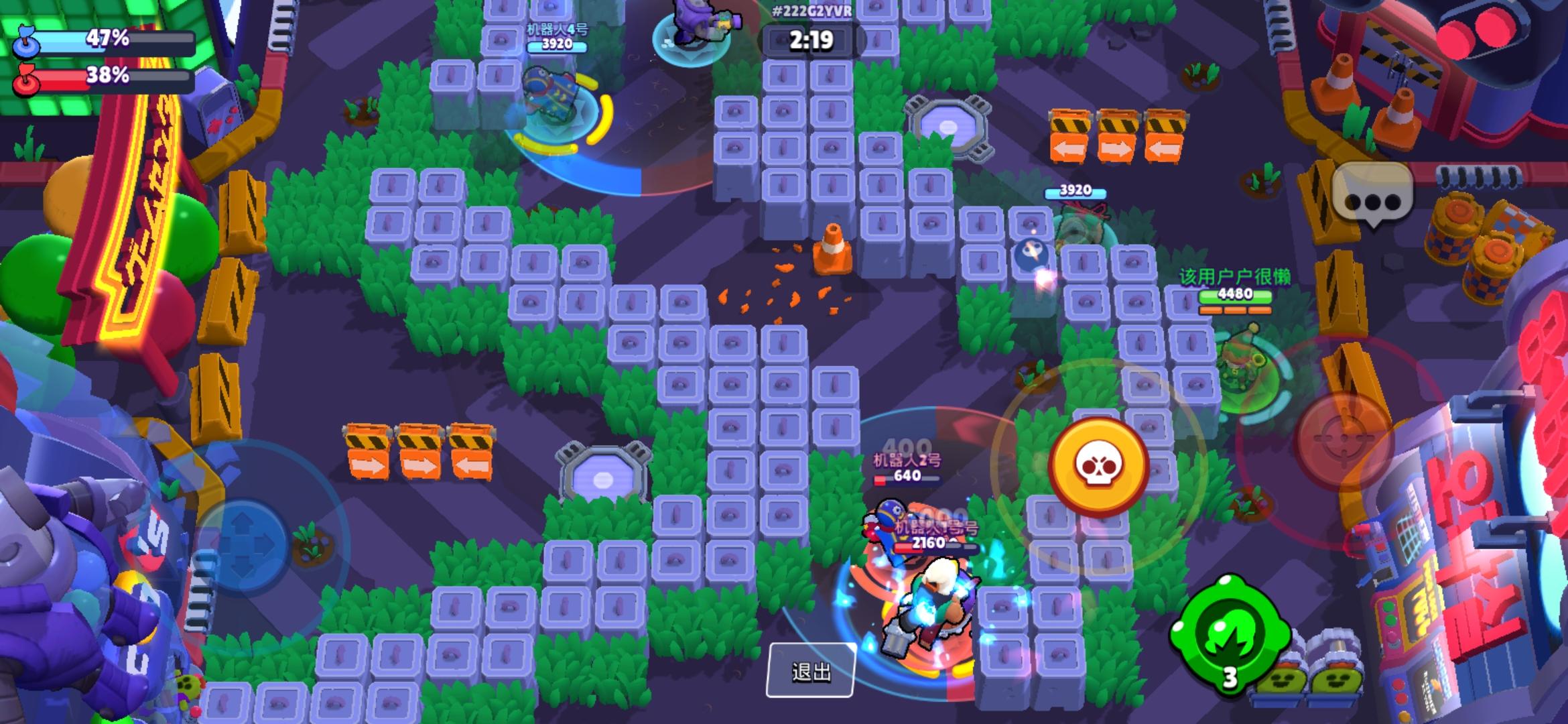 打玩家自制图碰到一个这个图,刚好又没有投掷型英雄,或者是能破墙的英雄,只能这么傻呆呆的站着尤其是左上边的那个玩的真欢乐