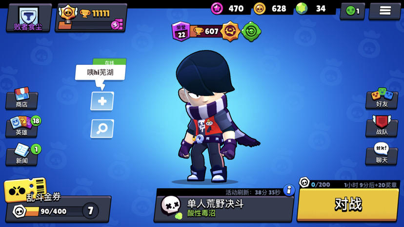 和一个不太擅长布洛克的朋友一块打的从750,掉到728然后他下了我单排,在淘汰图遇到了一个老八(今天不是有淘汰任务吗,我就打算一直继续一口气打完)第一次遇到,输了,然后我继续,他退出然后中间隔了几局,可以看到他还是736,我掉到720了,我比较佛,队友多拉我都打了起先没认出来这家伙然后游戏内他给我比红拇指,只打我不打对面我也没理,继续铲我的紧接着,他开始不打人,也不打我(因为我