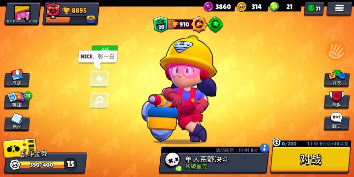 找个合得来的长期双人荒野队友(其他模式也行,不过我玩的不多)。男女都行(当然是女孩子最好啦,毕竟跟小姐姐一起玩是双倍快乐)。上分的时候我主要玩单双人乱斗。其他模式也就图一乐。小蜜蜂,P先生毕业,下一个准备弄艾魅。本人男,待人和蔼可亲平易近人,有意向的hxd或者小姐姐可加我扣扣 1980552823或者游戏加我。本人深情专一,找一个能长期的就行,技术都无所谓。