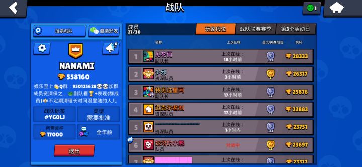 欢迎大家加入吖吖!!❤️❤️不内卷 不比分 有群可入(也可不入) 17000+可入 打战队赛就好啦 大家都是养老玩家坚持到现在很了不起啦~~希望大家一起继续玩🌟🌟太久未登录可能会被t 但是回归后可重回永远留有位置🌟🌟#YG0LJ ——战队搜索