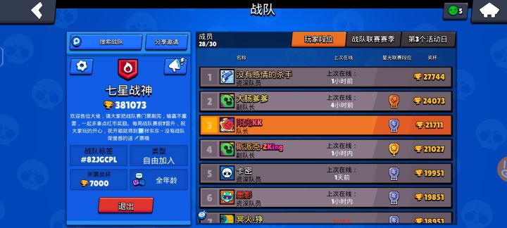 大师战队招人,20000以上可以直接进入!要求:每个星期都要打满战队赛,打不满也不说明的一律踢出战队成员活跃,友善。有意愿的可以先加战队q群了解情况(图片中有)欢迎大家的加入!这是战队赛最新一次的情况