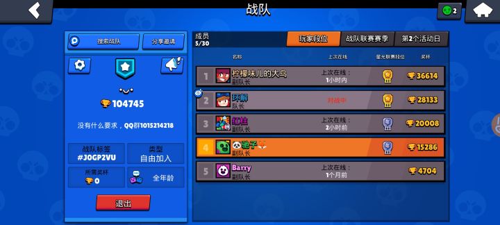 有人玩荒野乱斗的吗?加一下我战队吧!