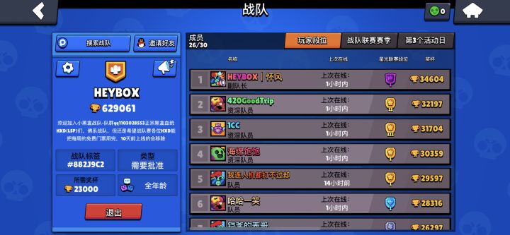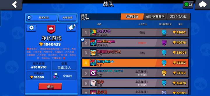 我们是一群热爱荒野乱斗的全平台玩家(*¯︶¯*)。从lolm 原神 到 泰拉 饥荒 到R6 OW到 黑魂只狼 到 动森 塞尔达 到共同的荒野乱斗。٩(˃̶͈̀௰˂̶͈́)و佛系战队,只要求每周打满,不论输赢。当然队内有多辆固定车可以带飞,也有多位大佬在线等你组队,当然你也可以选择组成固定车,三排上大杯!(=゚ω゚)ノ不定期会举办战队友谊赛,有跑酷,典狱长,泡泡堂等多种快乐模式供你happ