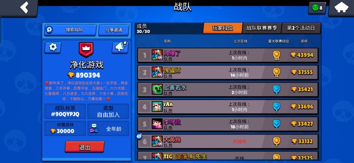 快加入战队啦,来了每周600起步战队币,我们八个队友就能打进前五,快来人吧,马上晋级大师了!那!
