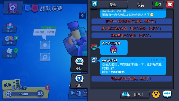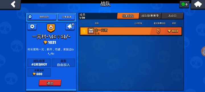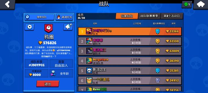 菜鸡战队招人,求吃一点点战队奖励下面是链接和战队码现在战队里面只有两个菜鸡活跃一点就行了,能做完任务就行#L20GJCJhttps://link.brawlstars.cn/invite/band/cn?tag=L20GJCJ&token=gzaxwwpb&platform=android&pub=yoozoo&bundle=com.youzu.bs