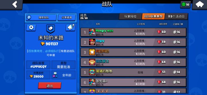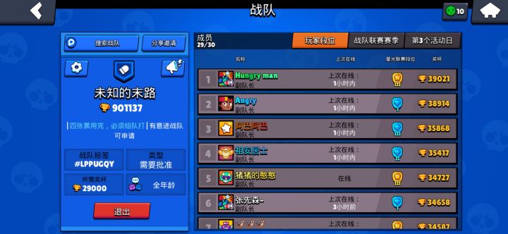 目前战队已满战队名:雅韵战队标签:#QPG29U0加入要求: 杯数最好2w4左右,战队联赛要求每周能打满战队联赛的票,有战队qq群沟通游戏,打战队联赛的伙伴快来加入我们吧。