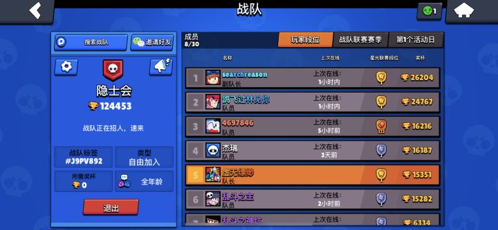 【荒野乱斗-国服】新战队招人(2021年12月成立)【战队名称】:隐士会【联系方式】:搜战队标签#J9PV892【入队要求】:杯数不限,我目前战队100%活跃qwq,欢迎大家过来。