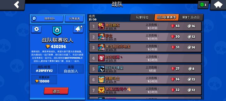 白银3战队招募,差3人,要求打完门票,欢迎加入,战队号在评论区,下次如果第一可领取250战队币