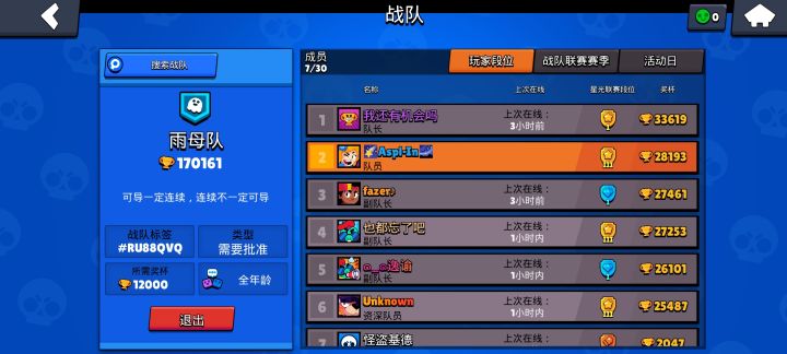 新战队招人~休闲战队,平时打打战队联赛即可2w杯左右来#RU88QVQ雨母队