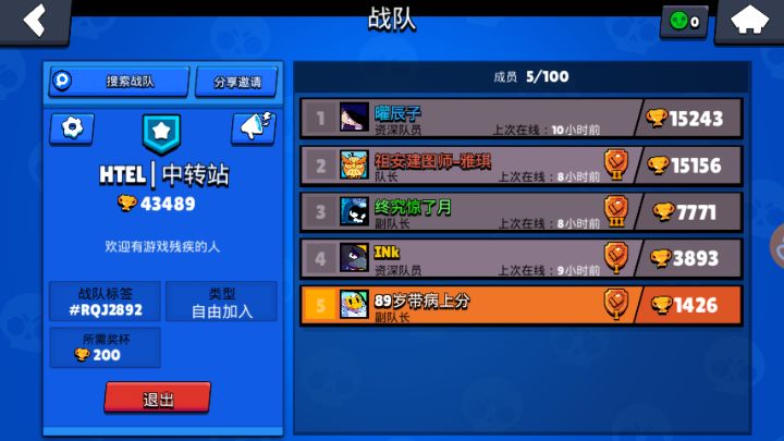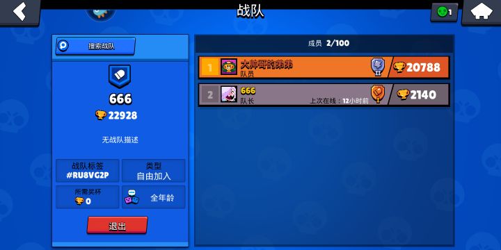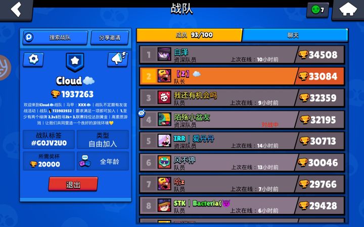 荒野乱斗(国际服) 战队被内鬼清理,虽然很无奈,但是也没有办法。战队名称:划船不靠桨,战队标签:#8JVPV80。原国际服本地排名一百多(具体忘了)希望各位可以来玩,欢迎大佬萌新的加入😊