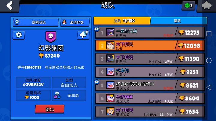 小蘑菇家族荒野乱斗战队招募。