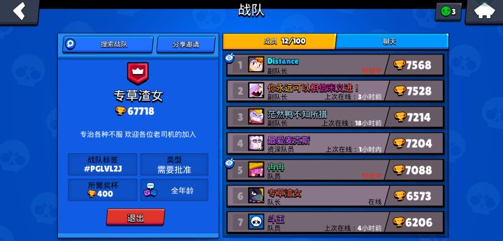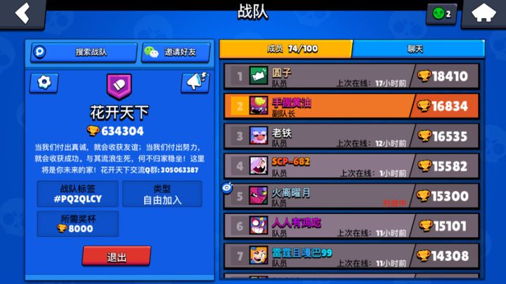 胜日寻友组队拼,合力搏战一时兴。等闲争得鳌头占,千杯万杯皆是春。工作辛苦,学业繁忙,娱乐时间少,不能天天拿着手机玩…不要紧…这里连续15日不玩才会被请出!莫笑战队小,温馨你我他,欢迎萌新大佬来交流经验休闲养老!花开天下交流Q群: 305063387战队标签: #PQ2QLCY
