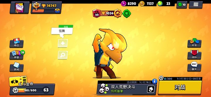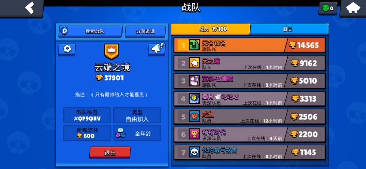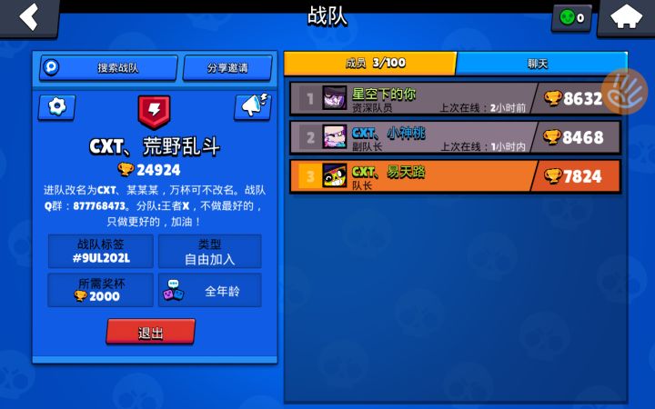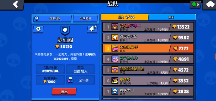 欢迎来玩耍鸭~点击该链接,加入我的《荒野乱斗》战队!https://link.brawlstars.cn/invite/band/cn?tag=2PLGULG&token=ccs7gxxj&platform=android&pub=yoozoo&bundle=com.youzu.bsQQ群号:1121975885