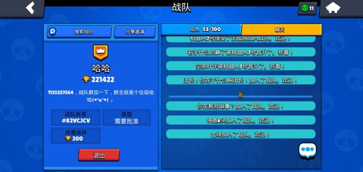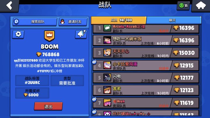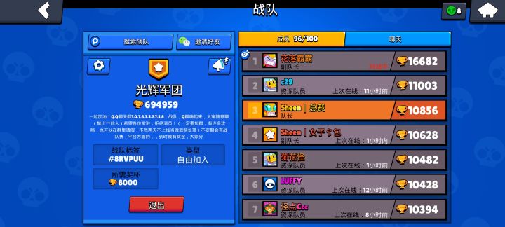 希望打造一个氛围轻松的聊天,开黑,欢乐的战队。昵称不统一格式。 不定期红包和娱乐活动。1队少量空余几个,欢迎6000杯以上的活跃朋友。2队休闲队,不限制杯数。最好是已经工作的和大学生朋友~q群823137880。已有100+人。