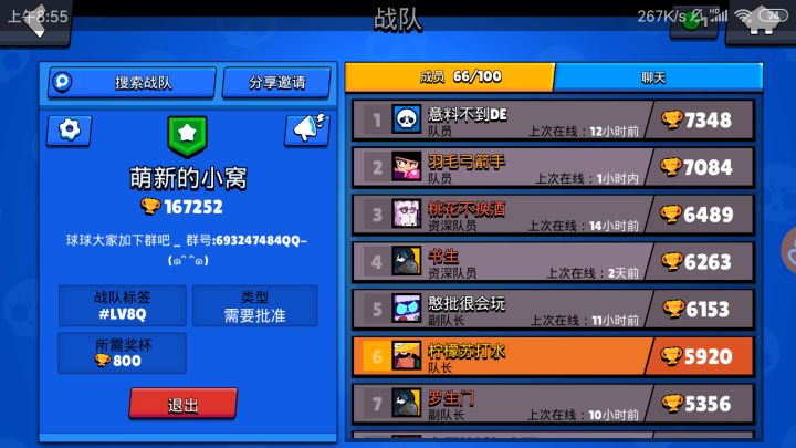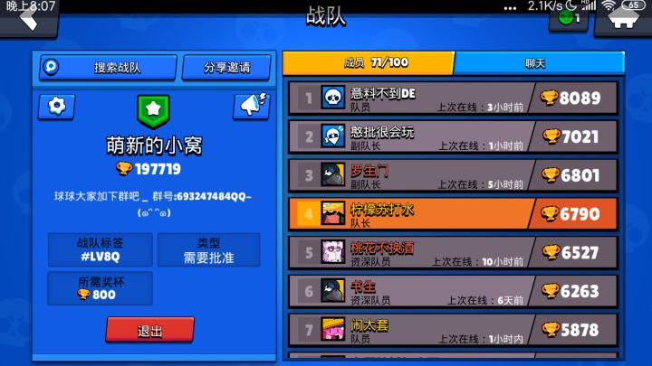 本人经营部落冲突荒野乱斗两家部落和战队,发展的都非常好,气氛友好活跃轻松,整个团体进步都很快, 是你的不二之选噢!图是老图了