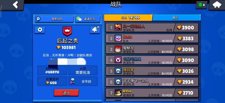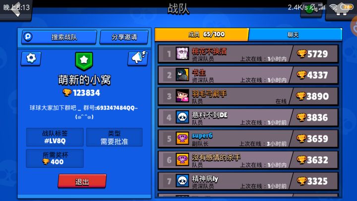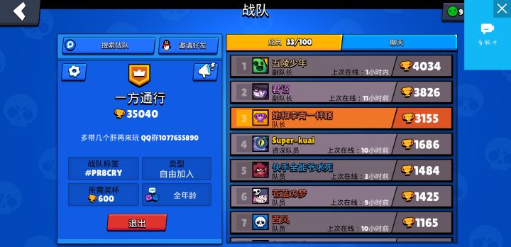加了一天战队,不是刷广告的,就是别的游戏的托,弄烦了自己重建一个吧~~200奖杯以上可加入,刷广告的直接踢飞!