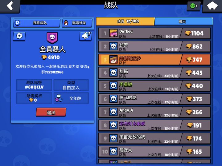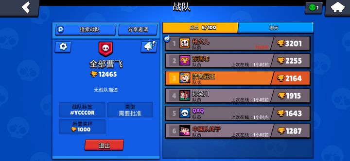 战队搜索:我的小熊熊 我们是一群好友一起玩的,天天在线5小时,欢迎各种朋友来玩!开黑一起搞!带新手,让新来的朋友找到家的感觉一起玩耍一些升级!