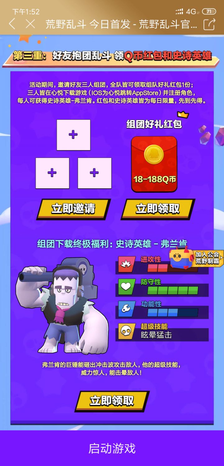 喜欢荒野的朋友不要错过昂,快来康康,还有福利领取昂快手平台为了这次的《荒野乱斗》手游,为萌新玩家准备了500Q币的巨额礼包,点击链接:https://ppg.m.etoote.com/doodle/o/VmxwunoG.html?hyId=doodle_VmxwunoG 、来领取你的专属礼包吧。