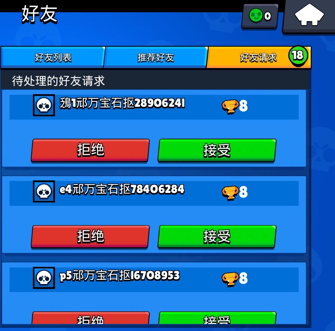 已经删了好多次了,一删就马上来加,于是我懒得删就积累下来了,全是这种的,官方找不到办法整治吗,像这种卖宝石的号名字格式都是“xxx邧万宝石抠xxxx”的,而且全是8杯的号,能不能多封封啊,哪怕接下来他们会重新换名字格式,或者多想想办法整改,真的被恶心到了另外,bs既然被腾讯代理了,能不能把那些账号信息里面出现的QQ号码给封了呀,这样子应该也有点效果的