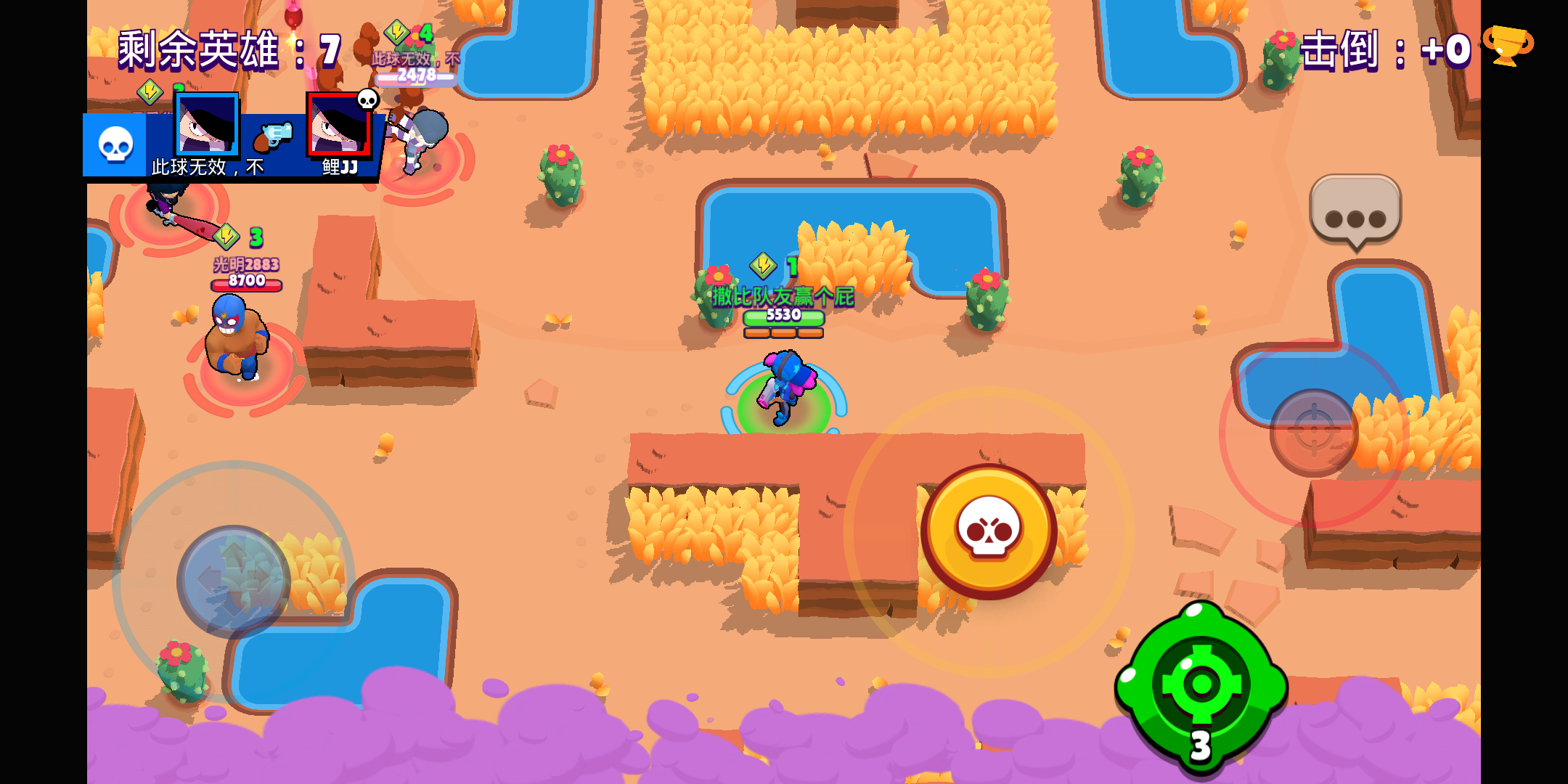 我原本有机会是能把第三名淘汰的,这个这我红WIFI 一出现,立马卡着不动,被小熊熊给镇住,然后没了