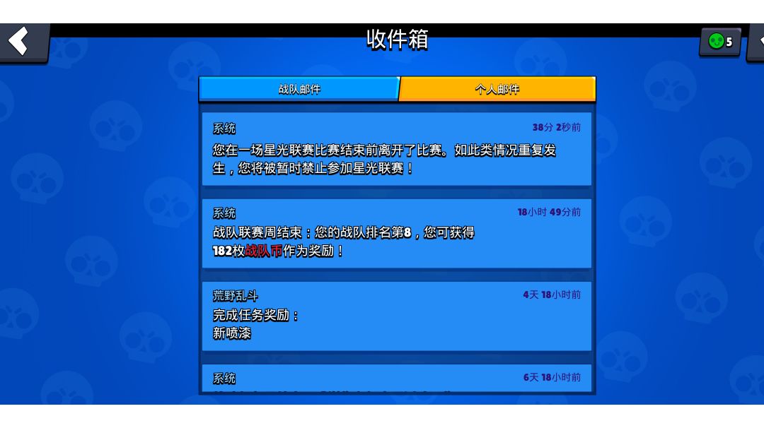 我就不明白了,这个荒野乱斗的官方到底在干什么,本来开了一局星光联赛,然后死活都进不去,还取消不了,我一看我就直接退出游戏了,然后一会儿再上线,看的时候邮箱跟我说,因为我提前离开星光联赛,下次出现禁止加入,我真的就无语了,自己设计的不行,还要赖玩家呗!