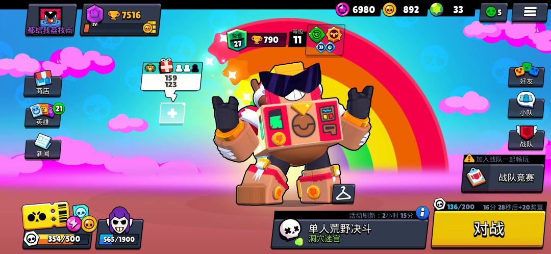 服了啊,第二局我一个人一串三最后还输了,20荣誉都上不去#荒野乱斗
