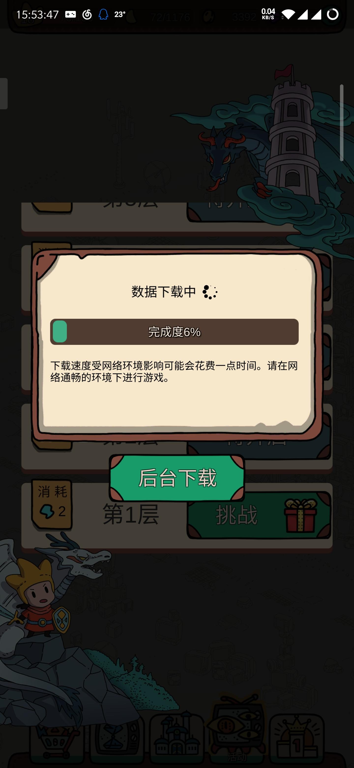 限时活动一直卡在6%下载不动,官方说后台在下载,但是流量都没在跑,原力下载呢?