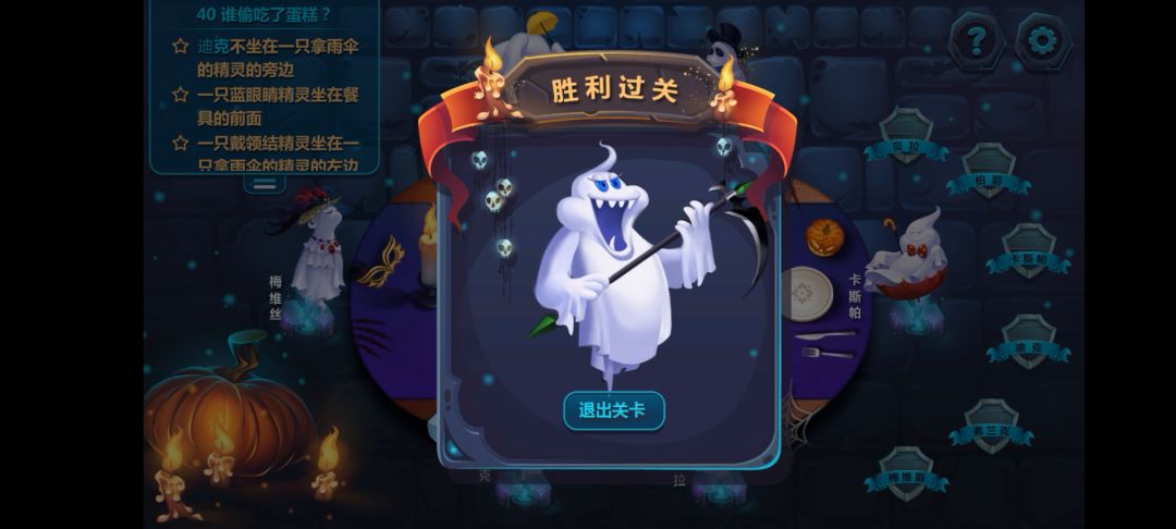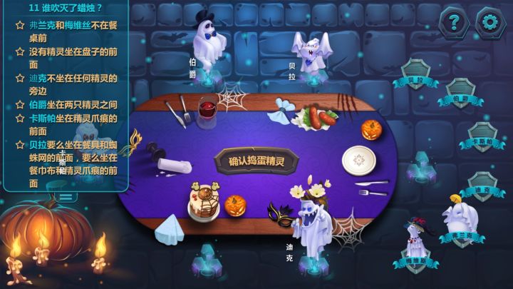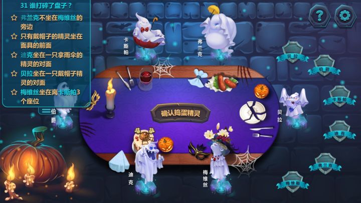 用的穷举法 有两个蓝眼睛和两个餐具 按照这个条件一个个试 运气好 试到第三种方法就过了 看到别人发的帖子有符合条件但是没有过的 我想说这不是你的问题 这游戏好像只设置了一种标准答案 就算你对了和答案不一样也不给过 比如38关我反复验证了好几遍 我这个答案就是不行 把迪克位置调到右下就过了 郁闷……