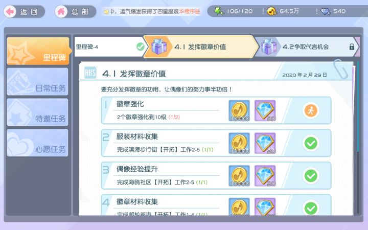 里程碑任务4.1升级两个10级徽章是bug吗,完成不了