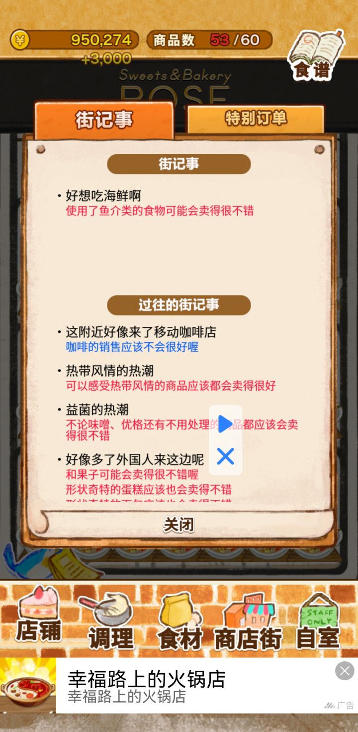 这个活动一小时200w意式狂水煮鱼材料我准备了900,一个小时不切商店街活动不变,一份原价2000涨价了1000。一个小时就帮我把剩下200w的债还了,大家平时一定要准备足材料,多刷商店街啊!
