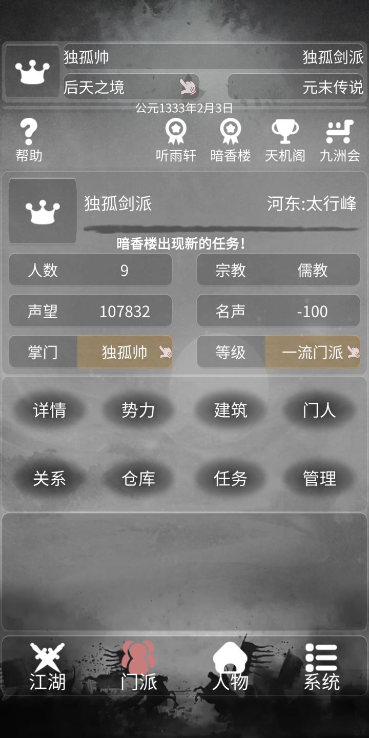 救完就可以回到河东,派打手们出去抢门派,然后建设,