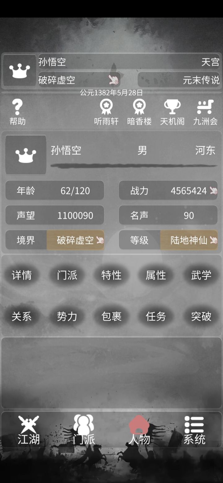 前面小伙伴们发表了不少攻略,而我不想加入势力,只想逍遥自在怎么办?答案是苟🐶,万事算了,不参与不发表意见看法。除了别的门派施粥赈灾,这个不会引起其余各——大势力反感,某天被敲闷棍。然后最重要的就是学几个练体修神功法,你会发现气血衰败再也不是问题了。你可以安安心心,悄悄咪咪的在大限来临之前突破等级,而不是等死。因为练体和修神功法,你也不用非得找各种奇遇,天材地宝弥补不足了!