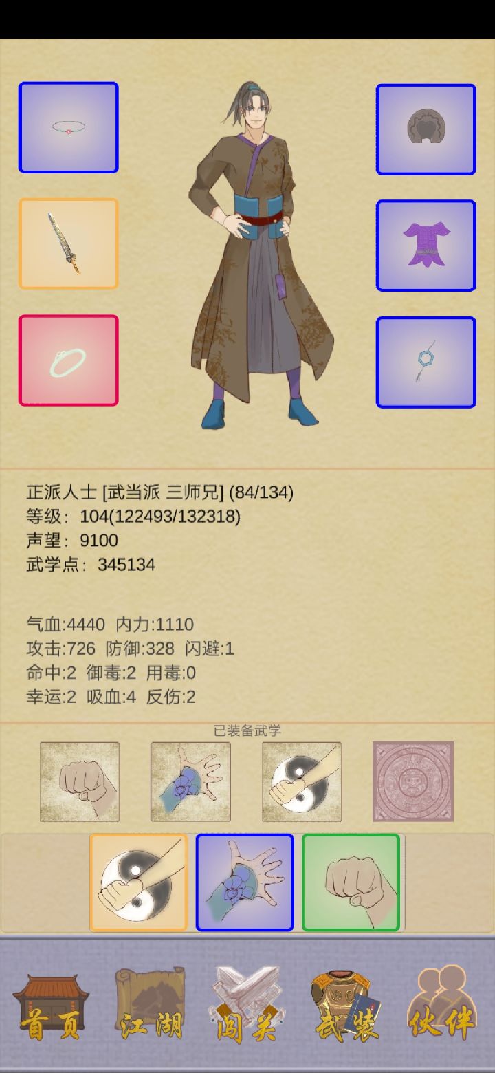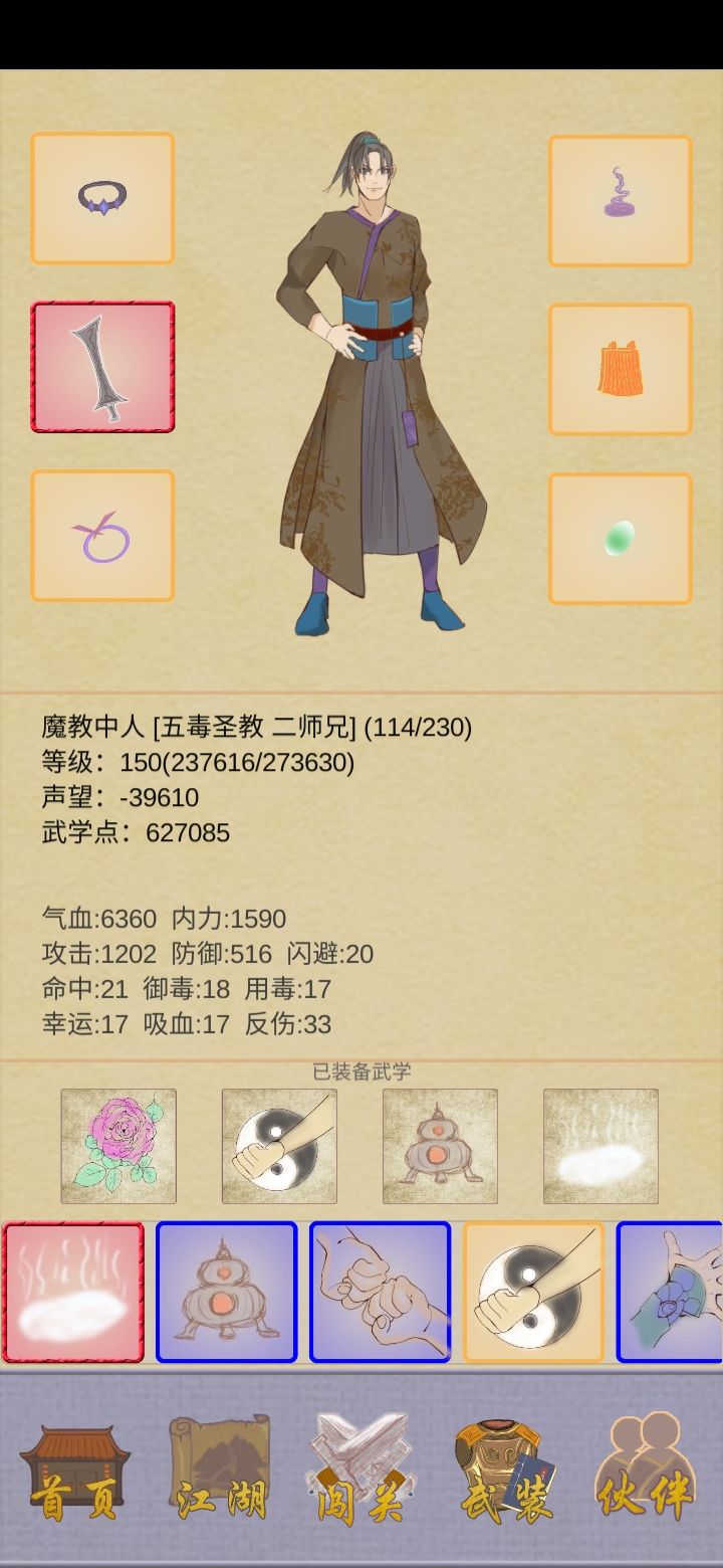 2.注意进入门派学了武功就可以判门,判邪教进正派会奖励一万铜钱,正教判正教好像会扣五万💰+三万声望