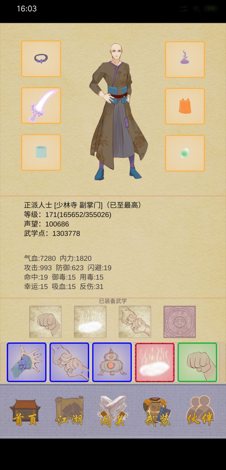 上图是游戏中角色所能达到的最强属性游戏中,加入门派除了可以学习不同的武功之外,随着在门派中地位的提升,血量、体力、攻击、防御这四项属性也会有所增加而能提升的次数越多,也就意味着四项属性增加的数值越高所有门派可提升的次数及最高地位时四项属性的最终值如下:https://www.taptap.com/post/66342981增幅道具的BUGhttps://www.taptap.com/p