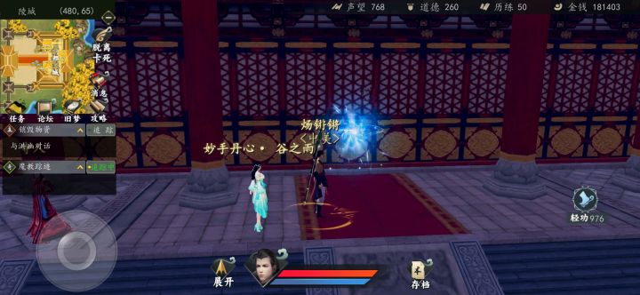 1.轻功跳墙进入陵城皇宫(轻功练到三段跳为佳)具体位置如图:2.有三种方法可以进屋子,我用的是轻功进入3.进去之后会遇见个太监总管,直接触发剧情需要击败他(老太监有一点厉害,菜鸟会被完虐),打开屋子正中的宝箱,就获得了宝典欲练神功 必先自宫……鉴于是阴系暗器武功,套路不合俺没练,不知道练了以后妹纸会不会跑光光