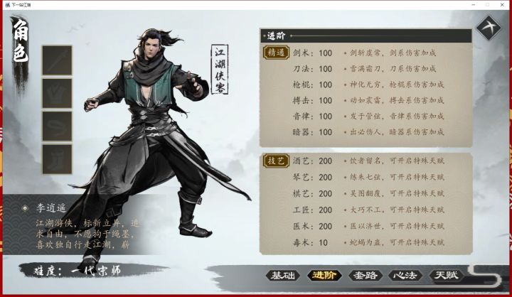 没有爆改,只是在合理范围内给了一套装备和太极精要。DLC党为了满足大家需求,就给了四个初始武学。修为和金钱为了节约大家时间改了。六艺满了懒得刷了,挺蛋疼的。毒的话为了刁延支线没有满,但是给了书。装备就没有改词条了。让大家自己洗,很上头很好玩。天赋选的踏月留香,因为考虑到万道森罗不知道会不会并不能让天赋的减伤抵消。所以这个是最好的。档在最下面,方便大家下载下来打各种线路。