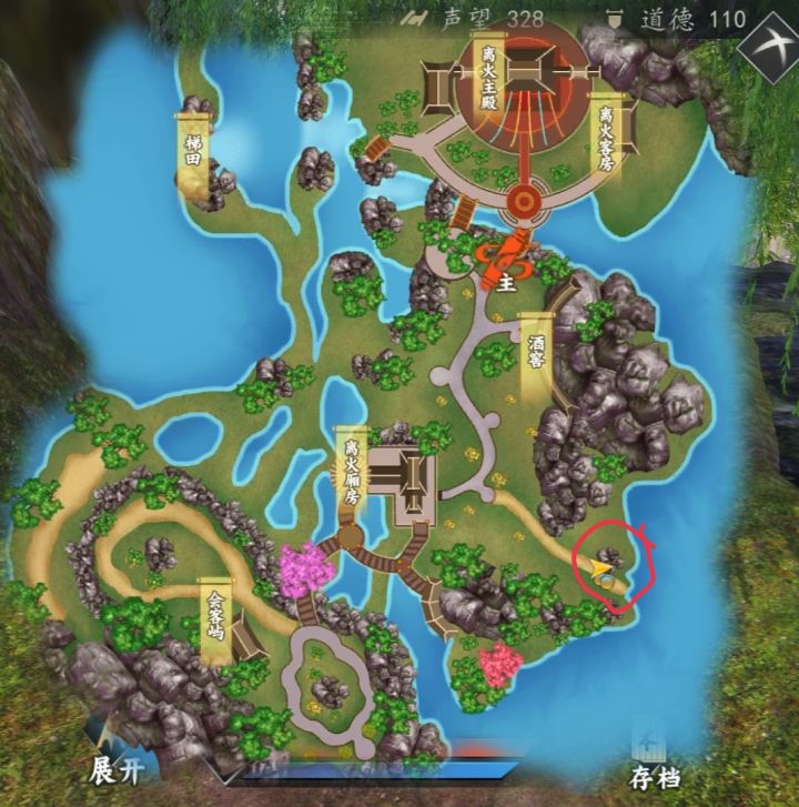 第一次发攻略有点小激动(´•ω•̥`)开局出生先把算命的旁边宝箱一拿主线任务叫我们去见村长然后回家,见完不要急做支线,先回家。屋里屋后俩箱子一拿。然后顺着去大佛的路向上看见一座亭子,记得远离(没有佛珠会被揍趴下)。来到大佛旁边的树转两圈会捡到一串佛珠,先放包里,接着直接往大佛走,你会发现这个大佛是空心的,往下获得藏宝图碎片三以及一本红色残篇。接着往来的方向往回走到这个位置,还是大佛旁边往