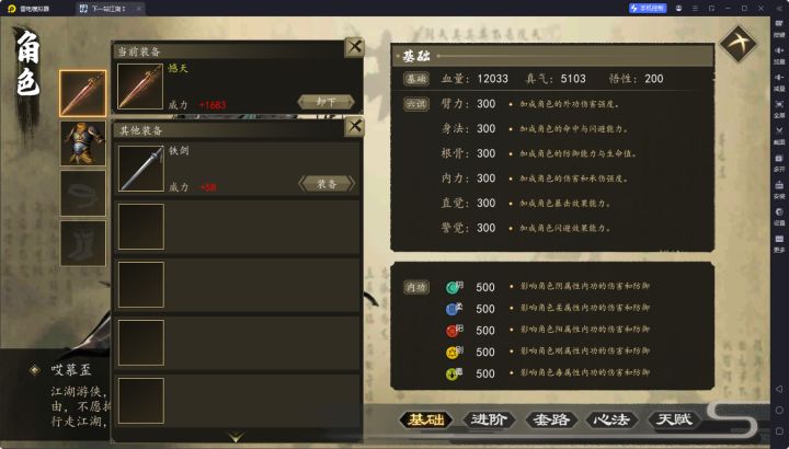 #下一站江湖 #存档 下一站江湖I新手存档新手村2分钟存档,浅改了一下气血,真气,六识,内功,精通,技艺,修为等。