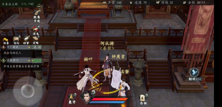 九阴任务的时候也接了冷霜寒的凤楼任务,这小子居然半路跳出来抢九阴,被拍掉后,凤楼救他师傅又活蹦乱跳出来了。这种冲突玩起来很出戏,不如干脆设计成九阴拍死冷霜寒就没有风楼后续,冷霜寒也就此挂掉,不能招募。如果提前帮助冷霜寒救师傅,看在过往恩情,九阴时候他就不会出来抢武功秘籍另外无论敌我有头有脸的NPC都太弱了,景一方这种前二十的高手,居然能被三五个南斗教弟子打成残血