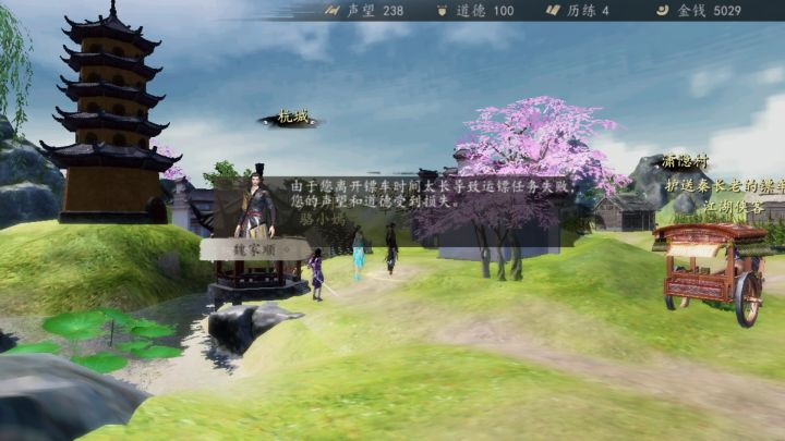秦长老的护镖任务,出杭州时有bug,人先出来,镖车就看不到,镖车先出来,,就直接任务失败。
