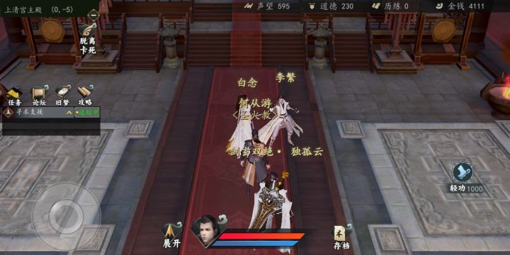 咸鱼手机带不动又想玩高画质,在电脑上用模拟器玩的。去酒楼遇到曲昊被劫镖,战斗胜利后就直接黑屏卡死了。😂
