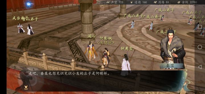 自建门派参加武林大会时有个小问题,和阎心对话跳出来的是秦霂要去我庄子看看😂