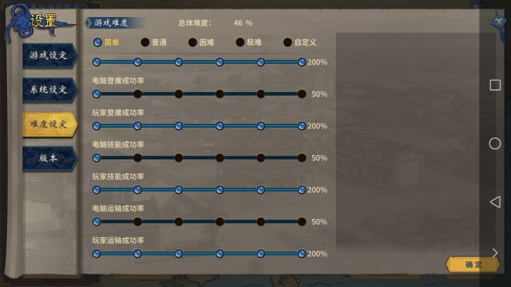 难度设计可以参考汉末霸业,游戏细节上的难度无法调整真的很可惜,