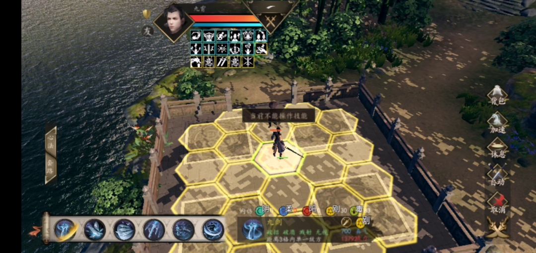 功法如下:招式:还要带上施夏云血狼牙:战斗截图:说明:两个负面buff是两个五毒教弟子静功反制打的,可以看到九阴蓝耗21474无法释放,另外想一回合正邪要注意走位,走位够不到下一个敌人也会断连斩。