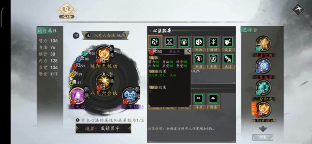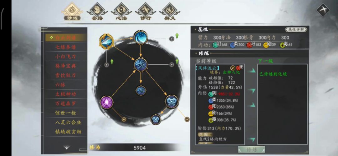 首先,为了有些大侠一直讨论《万象森罗》多么强,那我就偏不用了呗~这次剔除《万象森罗》选用《先天神功》,结果反而更加好了,柔剑满血满真气无损虐杀正道武林!就问你柔系强不强~一个地绝内功的搭配也可以满状态★ 同样是学习,柔姐姐的学习能力没有阳哥哥那么稳定。但是别人柔姐姐居然是一个回避反特长生!所以柔剑的稳定性太强了,学习失败?那我就不用变身,回避反击你就好了不是吗! 啧,有两个特长的系别真的可以为所欲为。因为这个不行我就用那个,柔剑就是这样,选择一多,强度自然而然就比其他系别更多样化,不单一不是。